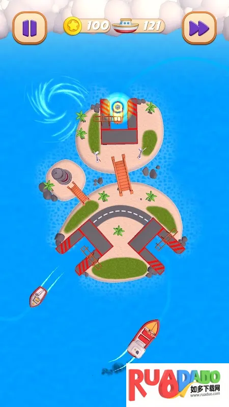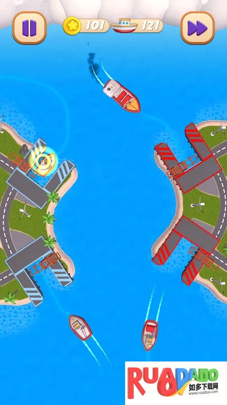 1. 令人上瘾的划线交通管制玩法,每一次划线都决定着船只走向。