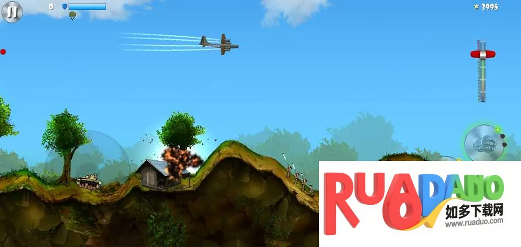 地毯式轰炸3是一款有趣的炸弹游戏,驾驶飞机与士兵、坦克、直升机等多种敌人在多种地形交战。有新类似胭脂游戏模式,需连过3关保存进度,可升级飞机、收集道具,随机地图,无尽乐趣。