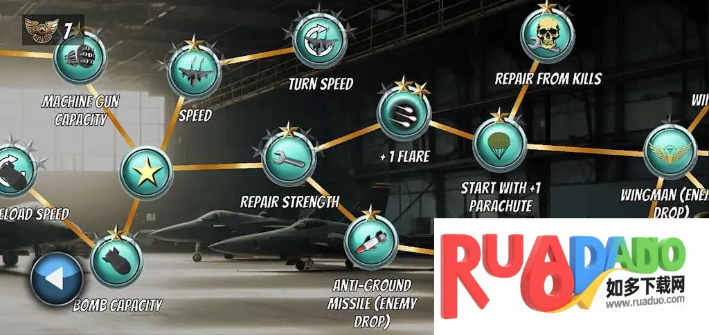 2、升级可在级别之间进行,还能收集道具提升飞机。