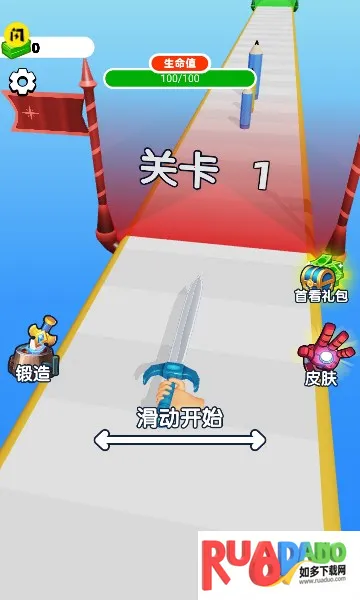4、手持剑面对各种障碍,目标是穿过障碍到达关卡终点,且要注意保留剑的力量。