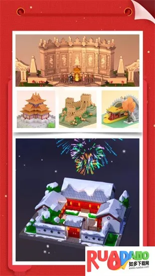 - 可按提示拼装模型,轻松完成搭建。在游戏里,玩家能充分体验组装乐趣,了解建筑结构,借助3D模型拓展想象空间,足不出户领略世界风貌。