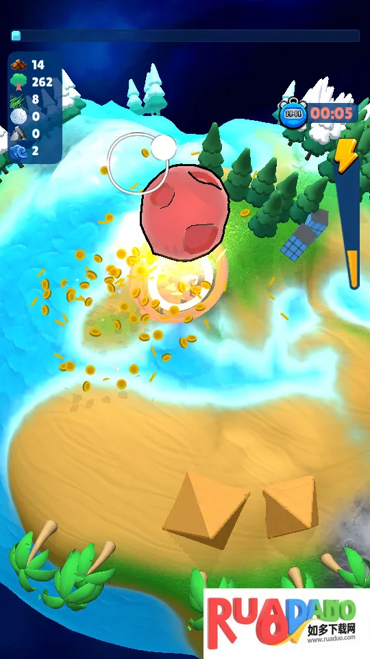 1. 操控威力强大的陨石穿梭星球,撞击使其体积和威力不断增强。
