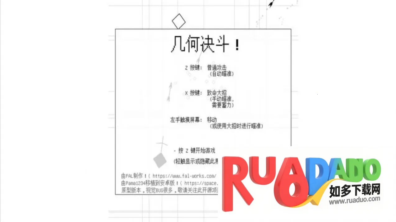 几何决斗游戏是一款超有趣的休闲策略射击手游。它玩法独特,能满足你对射击游戏的喜爱。在游戏里,你会随机成为几何形状,与世界各地敌人对抗。操作简单,z 键开始,z 键普通攻击,x 键致命大招,左手触摸屏幕移动或瞄准。白色是我方,可随意旋转,要小心别被黑色几何攻击到。