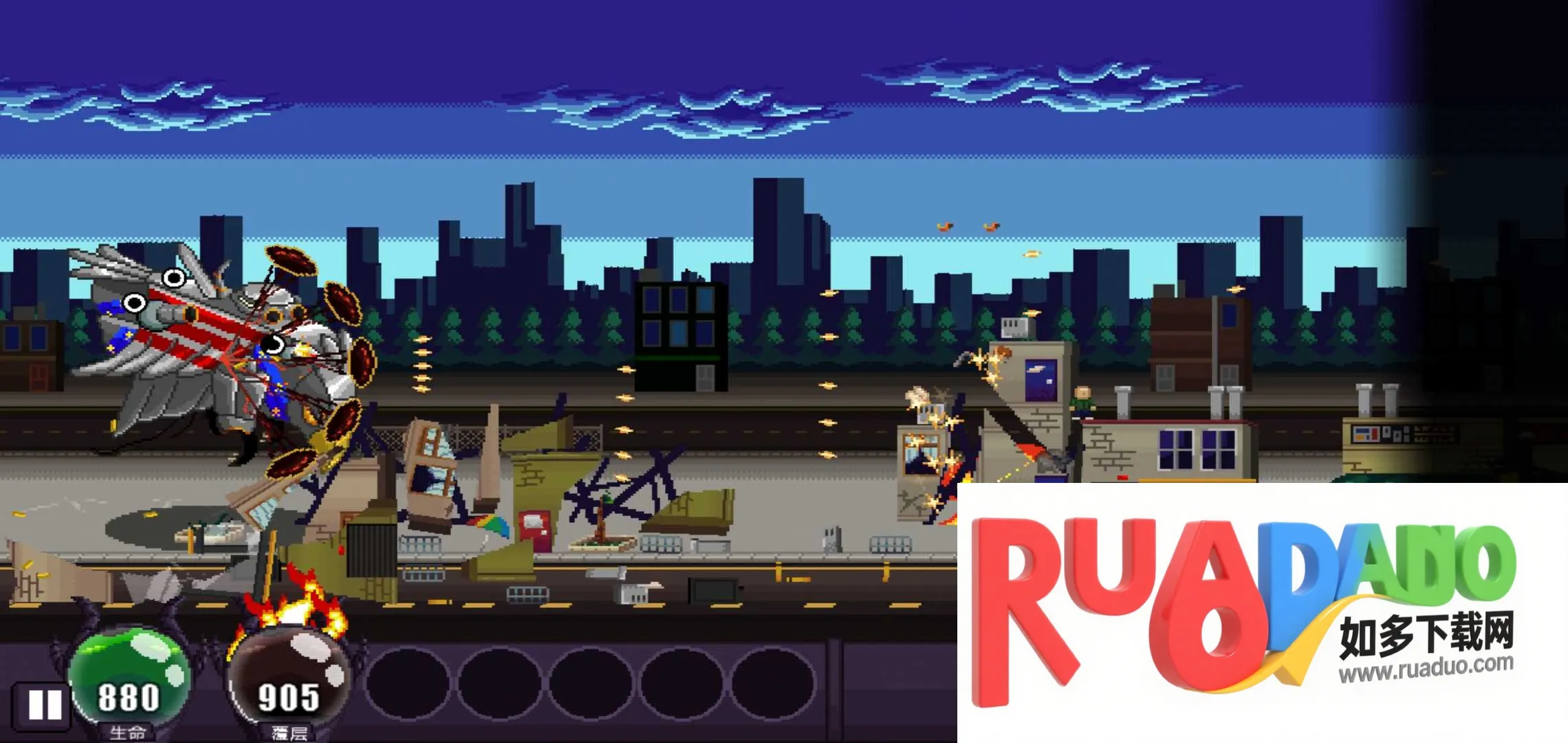 1、拥有精心设计的像素风场景,可尽情破坏。