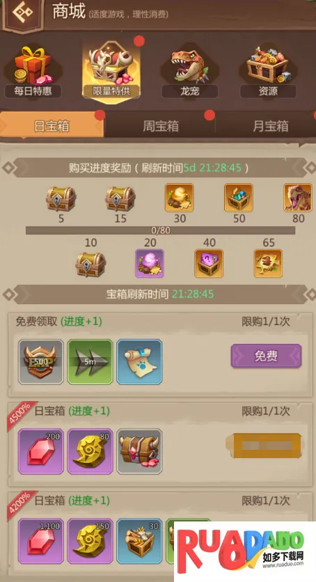 2. 龙宠收集军团养成,数十种蛮荒恶兽收集驯化,组建恐龙军团守护家园。