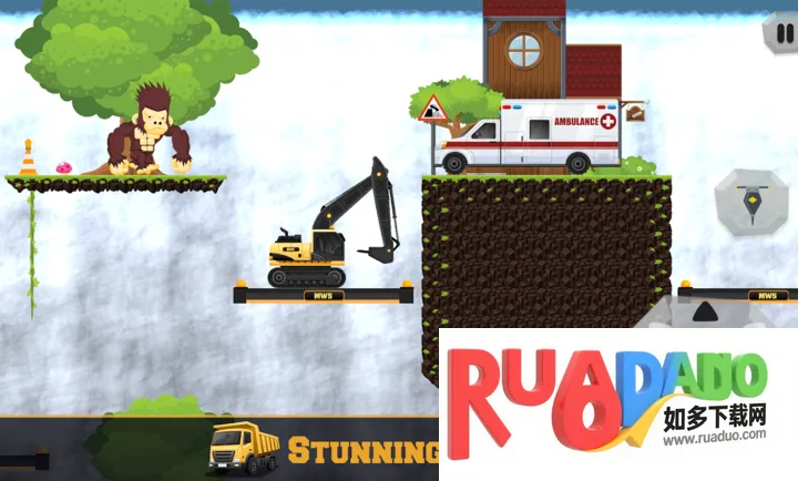 2、基于真实物理的工程谜题,每个关卡都是建造挑战,多种工程车辆在真实模拟下作业,有多种解法。