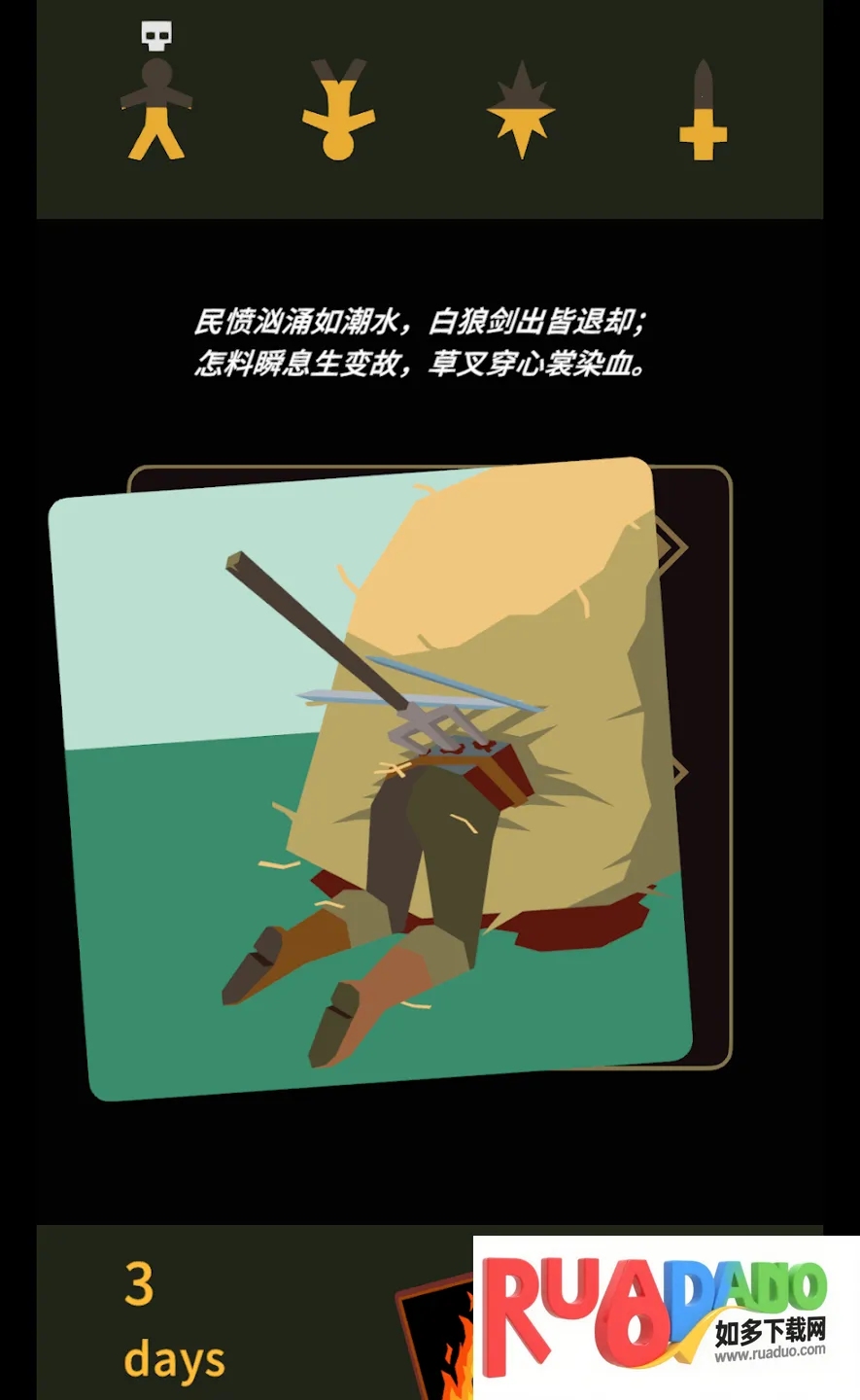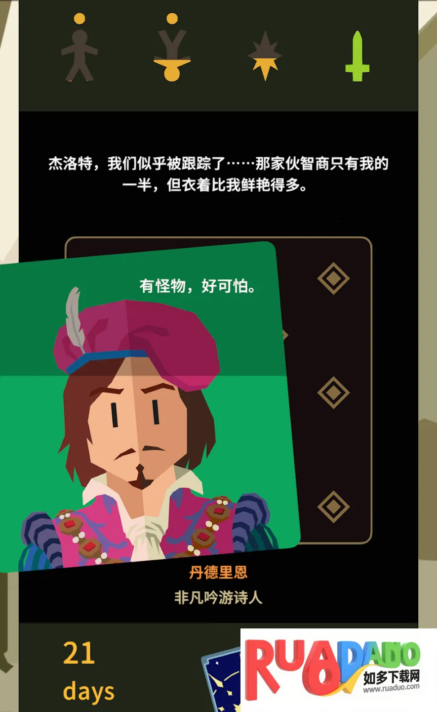 4. 透过吟游诗人视角,探索抉择与后果交织的世界,左右滑动决定荣耀或死亡,谱写史诗赢不朽之名。