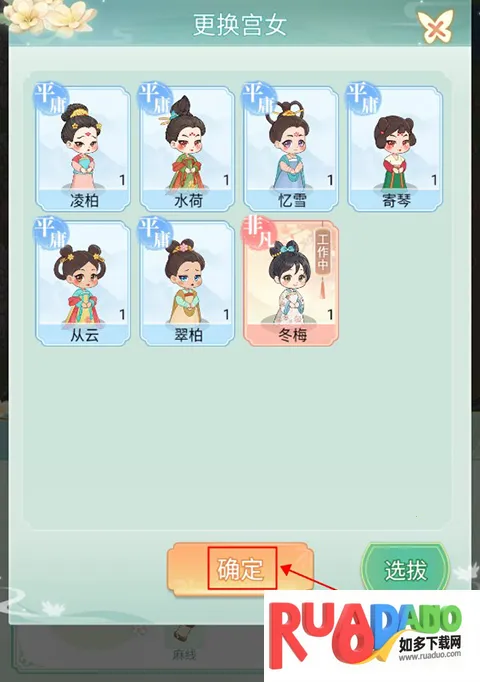1、玩家点击右下角的选拔即可进行采女的选拔,选择合适的采女加入宫中进行工作。