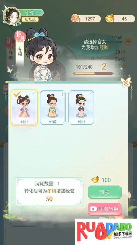 2、宫女还可以进行升级,消耗低级宫女进行转换升级。