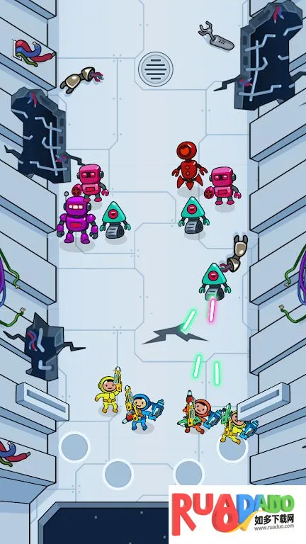 2、为宇航员准备战斗,合并相同武器打造威力更大的新武器,在空间站找新武器拓展战略。
