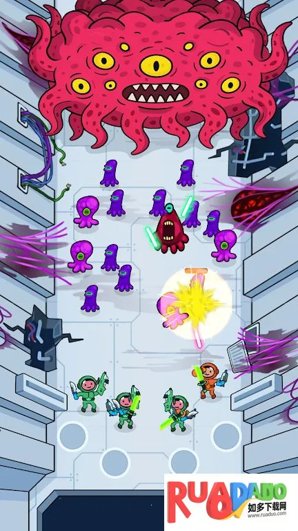 重力前线是一款太空战斗游戏,玩家指挥宇航员队伍拯救空间站,抵御外星人、机器人、掠食性植物和太空怪兽入侵。要为宇航员准备战斗,合并武器,在空间站找新武器,控制宇航员飞行,击败敌人与Boss,拯救银河系。