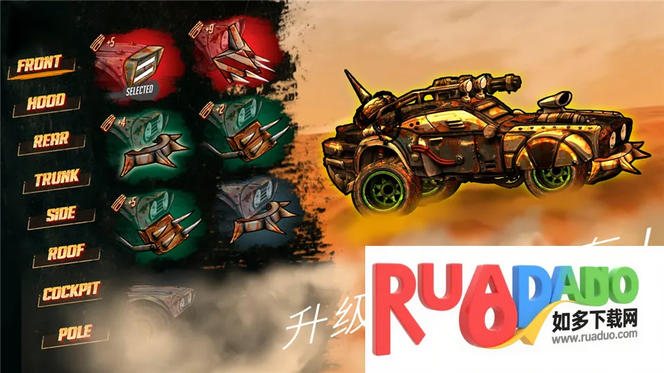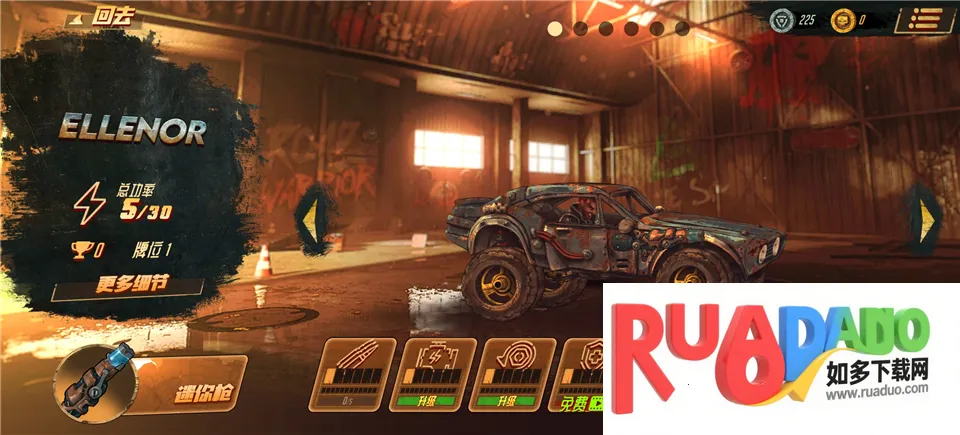 4. 能解锁收集强大的末世涡轮赛车,掌握每辆车独特武器、能力,用战斗物品和皮肤升级定制战车。