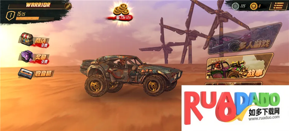在游戏里,你能驾驶强化车辆在荒野中进行刺激的竞速与战斗。可选择多种车辆挑战主线关卡,在高速公路上与玩家竞速,用各种武器如导弹、机枪与对手战斗,还能改装武器、引擎、轮胎和装甲提升实力。支持单人、多人对战及合作模式,还有丰富支线任务,完成有丰厚奖励来强化车辆和角色。更换车辆装备很简单,进入车库就能操作。更换收音机音乐也方便,点击选项即可切换。而且游戏特色十足,像实时多人竞速战斗、解锁收集多样赛车、升级定制战车等,能给你带来超爽的游戏体验。