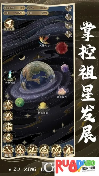 1. 游戏以祖星发展为主线,玩家能掌管星系,见证星球成长变化。