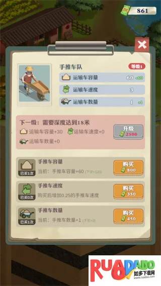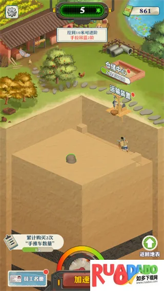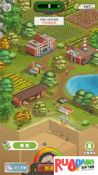 2. 模拟经营体验,升级挖掘装备、运输队、仓储中心提升效率。