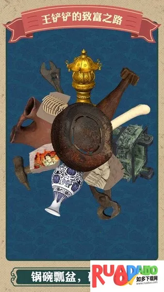 王铲铲的致富之路是一款模拟经营游戏,玩家扮演王铲铲在乡村老家挖宝致富。能挖出各类物品,升级装备提升挖掘效率,还有丰富玩法,如探索地下世界、玩特色小游戏,通过展览宝物获收益,画风魔性,体验独特。