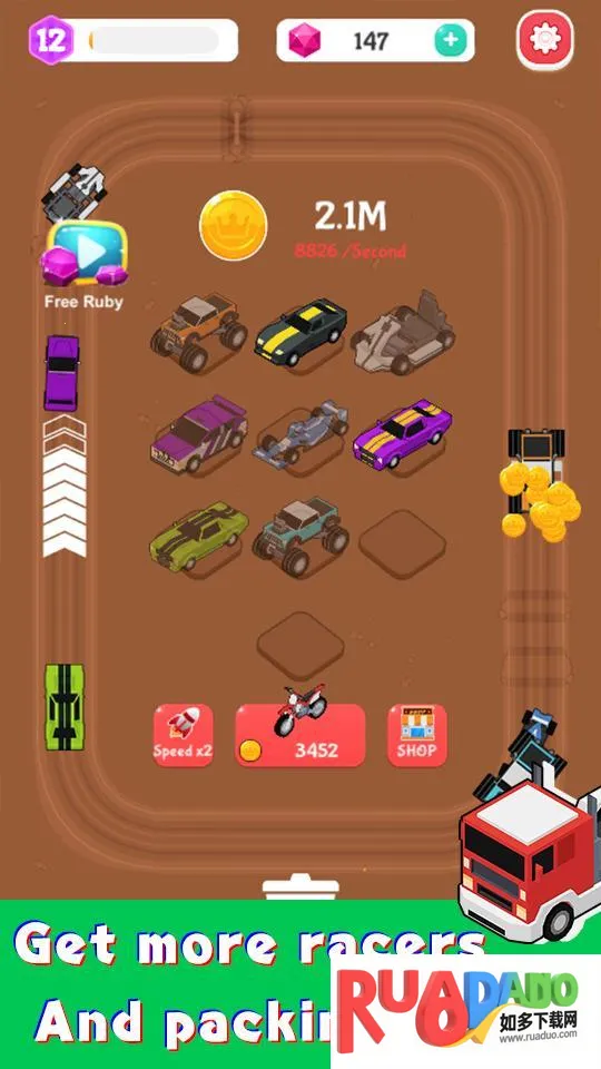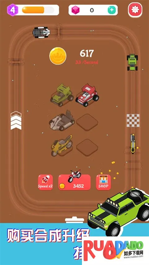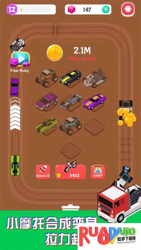 1、这是一款趣味十足的合成放置游戏,核心玩法是合并汽车创造更快更强的车辆,操作简单,点击屏幕即可合成。