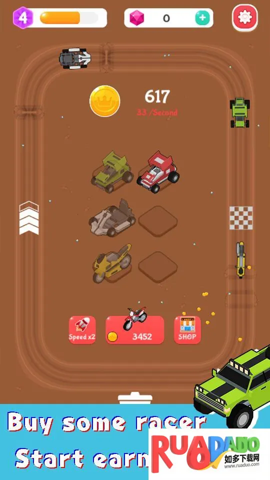 2. 挂机收益玩法:离线时车辆持续赚取金币,财富自动累积。