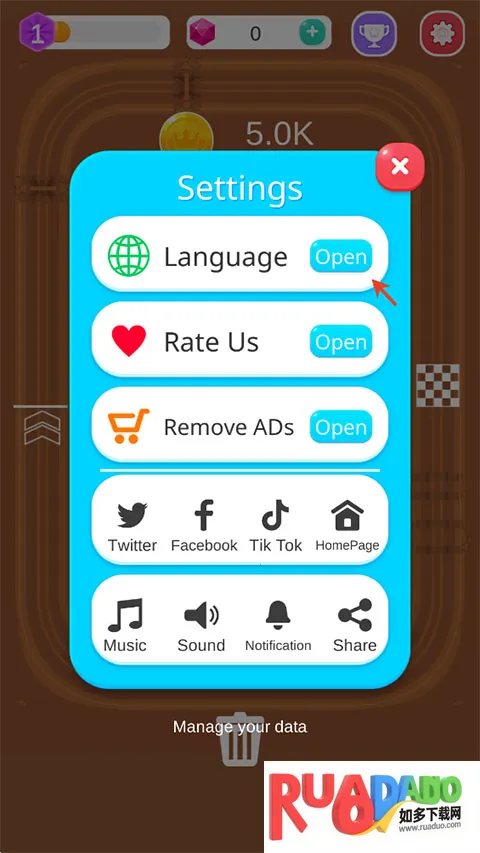 1、进入赛车大亨游戏内点击右上角的齿轮。