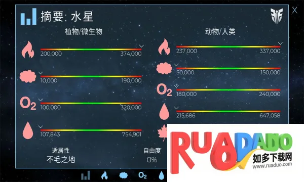 3. 能更改世界特定属性,支持人类生活,创造专属星球。