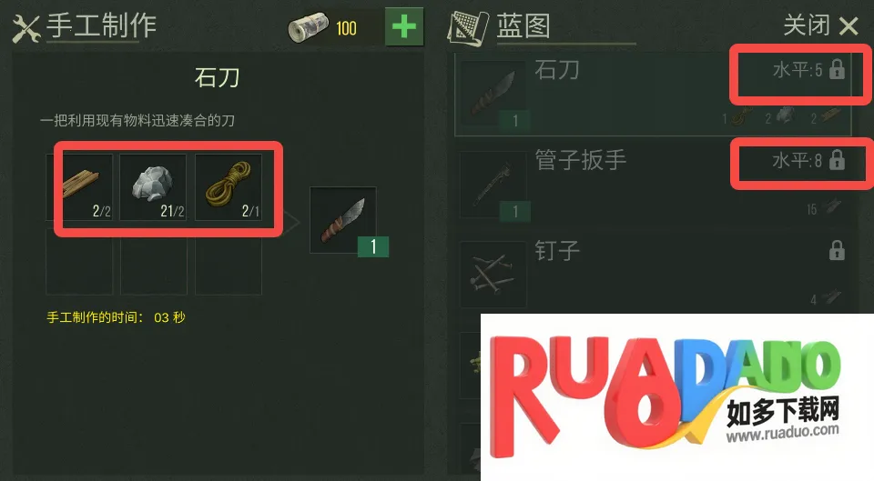 2. 可搭建升级工具台,制造食物生产工具与武器。