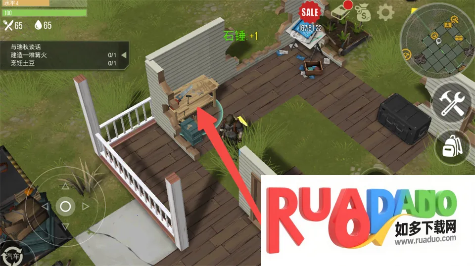 4. 能搭建升级营地里的工具台,制造食物生产工具和武器,努力在新的一天生存下来。