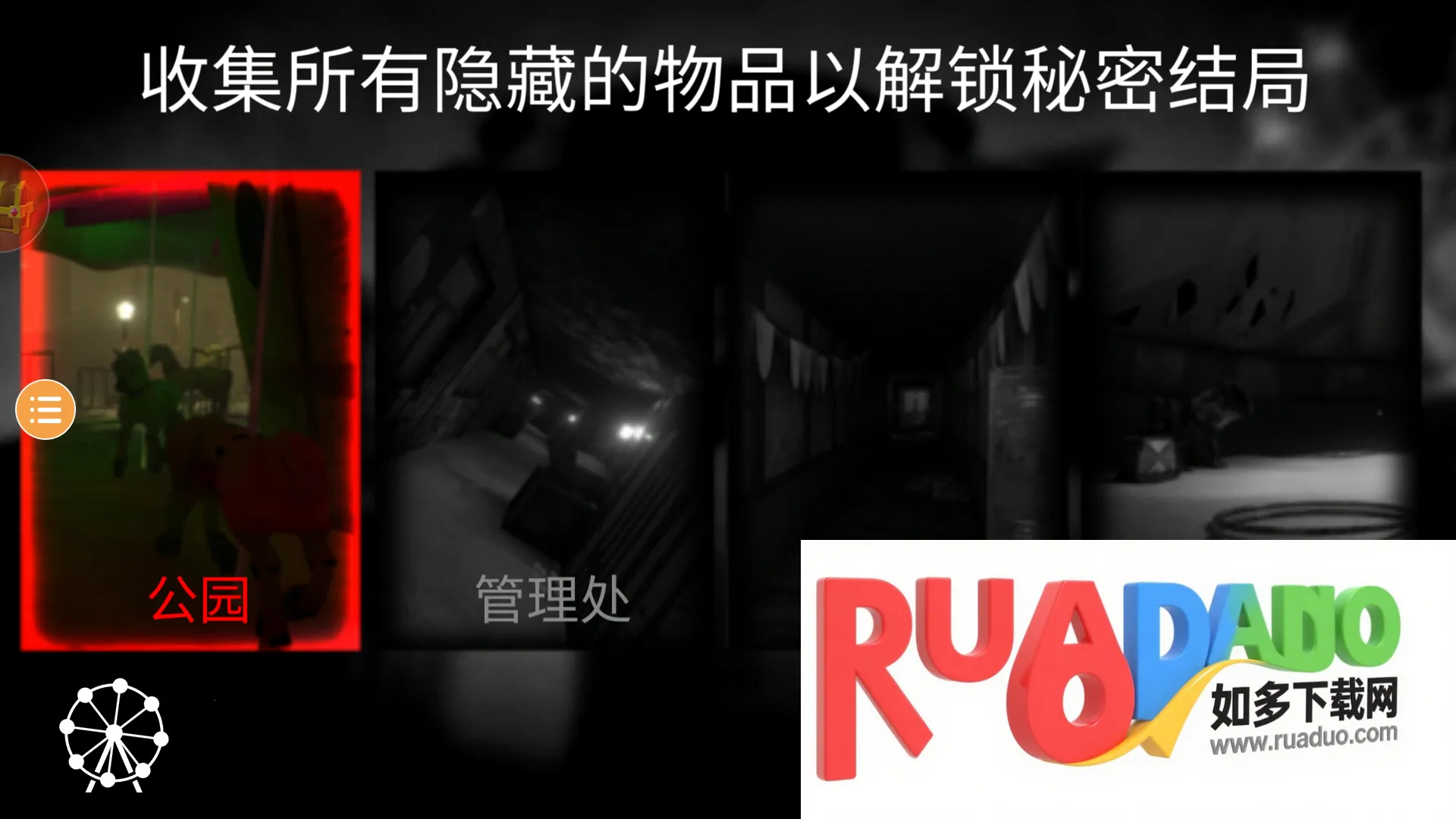 恐怖公园12026下载安装的游戏为恐怖公园1中文版,这是一款恐怖冒险解谜逃脱手游。玩家被困阴森游乐园,要穿越多场景搜集线索、组合道具、还原真相,面临时限、机关等挑战,有多种特色与亮点。