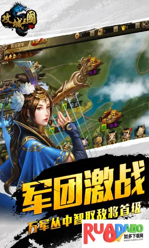 3. 实时国战,全民参与,军团或个人均可,三条战线对战,可观看具体战斗。
