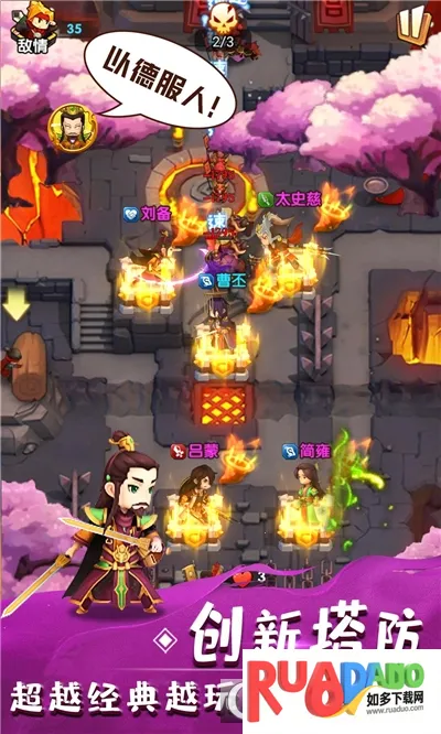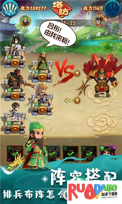 1. 这是一款三国题材的放置塔防游戏,集合超100位各具特色的三国武将。玩家能根据技能特点巧妙组合,自由组建独特战斗阵容。