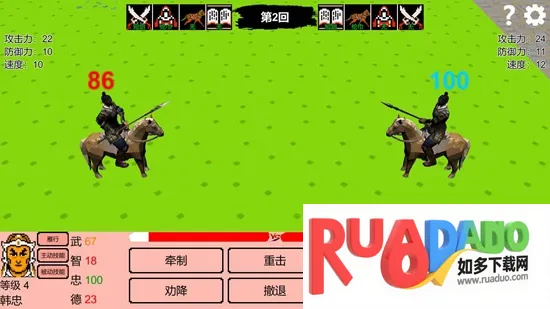 2. 派遣将领出征攻城,采用传统战棋走格子的战斗方式,考验策略布局,在野战中用计可能触发武将决斗。