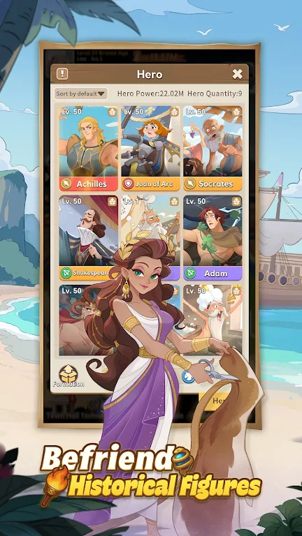 3. 特别设计众多历史名人系统,能与阿基米德、莎士比亚等传奇人物互动,融入其技能获发展优势。