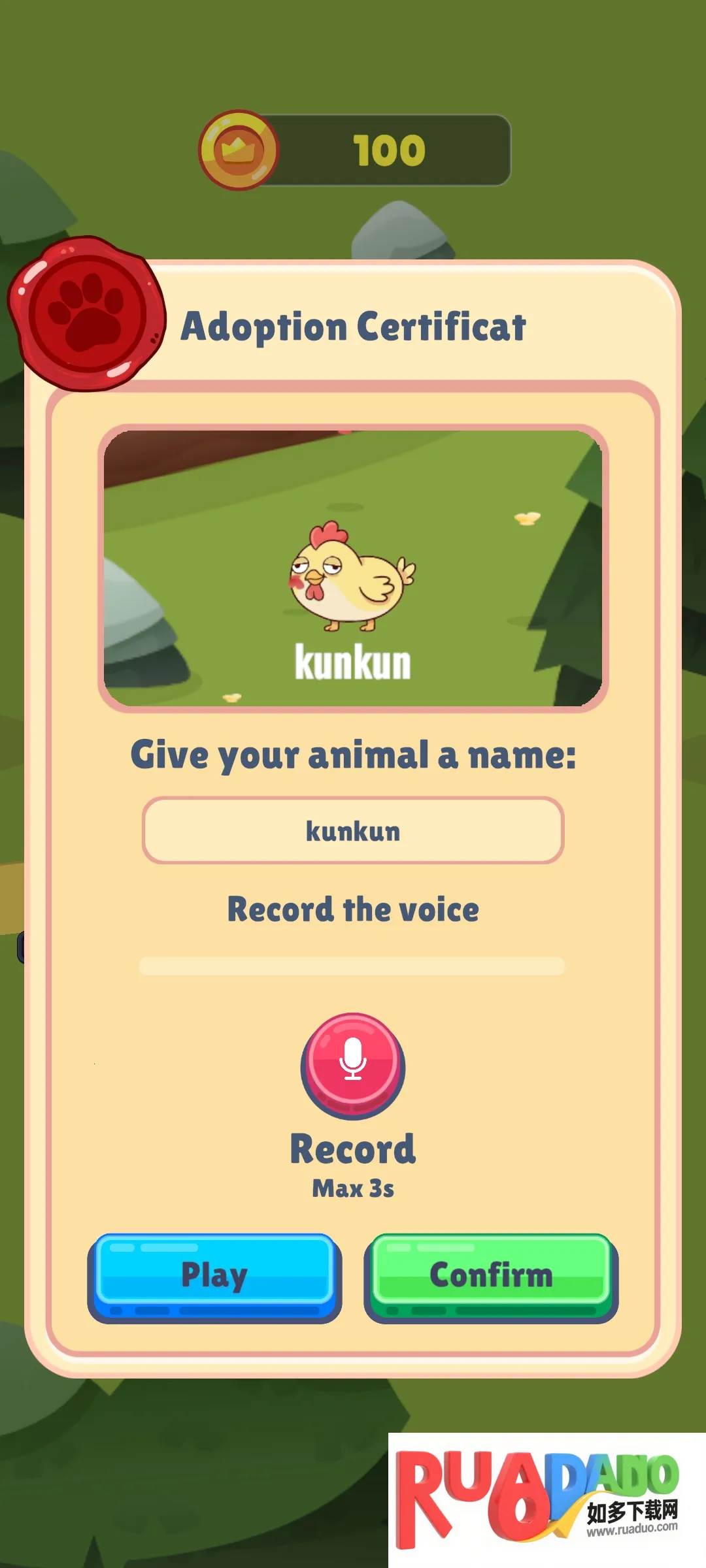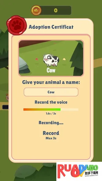 1、游戏玩法简单有趣令人上瘾,移动角色录制声音,动物就会重复,还能赚取金币解锁新动物。