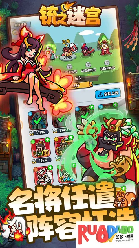 1. 可招募关羽张飞赵云曹操吕布貂蝉等各路英雄将领,根据特性和技能搭配专属阵容。