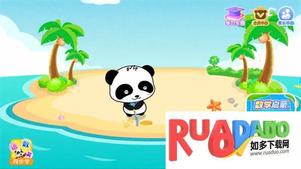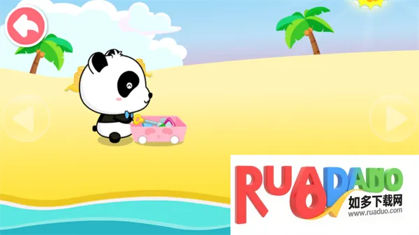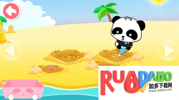 2. 游戏采用可爱卡通形象,宝宝扮演小熊猫在海滩挖掘宝藏。