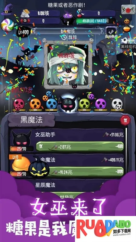 《女巫来了2026》是一款万圣节风格的放置休闲手游,融合多样玩法与魔法设定。玩家可扮演猎人或女巫,在九张地图对抗,有多种模式、道具,支持联机,能自定义角色,还可解锁成就展示技巧。