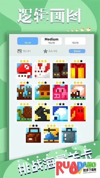 1. 逻辑画图是一款数字交叉拼图游戏,结合逻辑计算与像素艺术,能让热衷于益智解谜游戏的玩家感受到挑战乐趣,一旦开始就停不下来。
