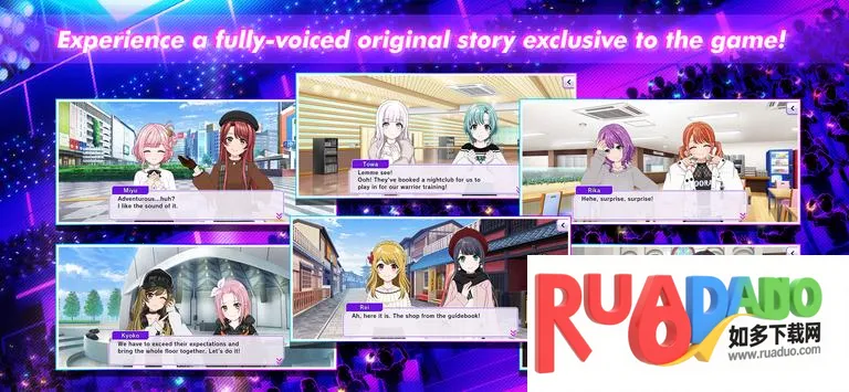 4. 拥有大量可爱的二次元少女角色,外貌性格各异,能力独特,可通过完成任务获取钻石招募新角色组成小队进行音乐挑战。