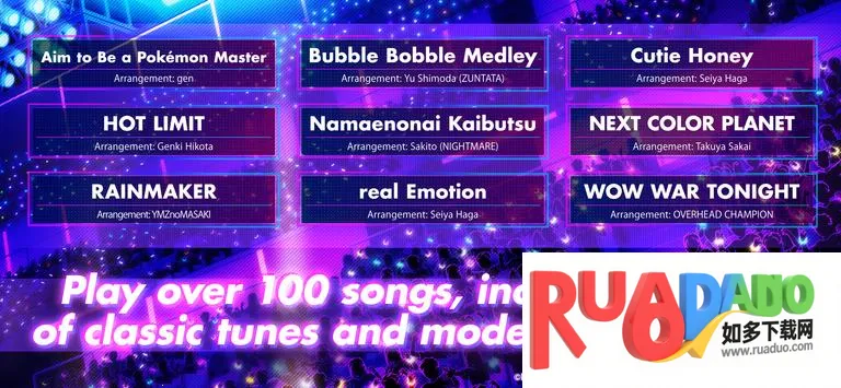 2. 游戏采用二次元卡通画风,收录200多首歌曲。