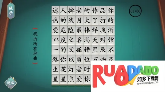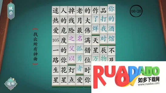 嘿,喜欢玩汉字游戏的朋友们有福啦!汉字神操作这款游戏超有趣。就拿“荼字找出除数字外的22个字”这类玩法来说,特别烧脑又好玩。它有多种趣味玩法,比如画字连词、字里寻字等。在游戏里,你得充分发挥想象力,通过对汉字的各种拆解、组合来完成挑战。像荼字,你要努力找出除数字外的22个字,这过程能极大考验你对汉字的掌握程度,包括拼音、含义等。每个关卡都有惊喜,只要你想象力够丰富,相对容易自由通过。完成挑战能获奖励解锁下一关,每一关都有新体验。游戏画质高清,适合各年龄段。在这里,你能尽情享受汉字带来的乐趣,感受网络梗的魅力,还能不断启发思想,快来试试吧,保证让你爱不释手!