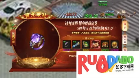 2. 游戏内豪礼众多,上线送自动回收,自动拾取,每日签到有真充奖励,打怪能爆充币,上线可领豪华大礼包。