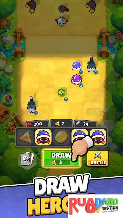 1、游戏玩法简单,抽取英雄合并相同单位即可开始战斗。