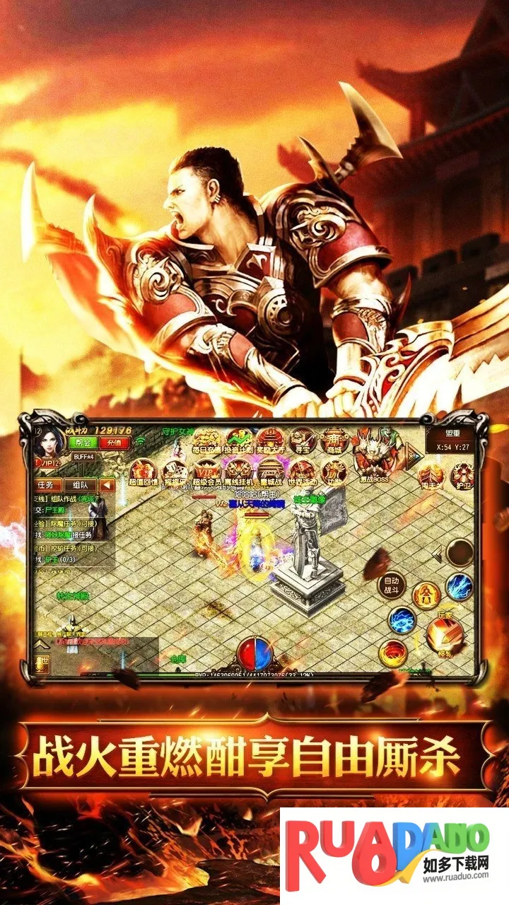 1. 它是一款传奇战斗手游,有开放式pvp玩法系统,能随时自由对战,体验紧张刺激战斗。