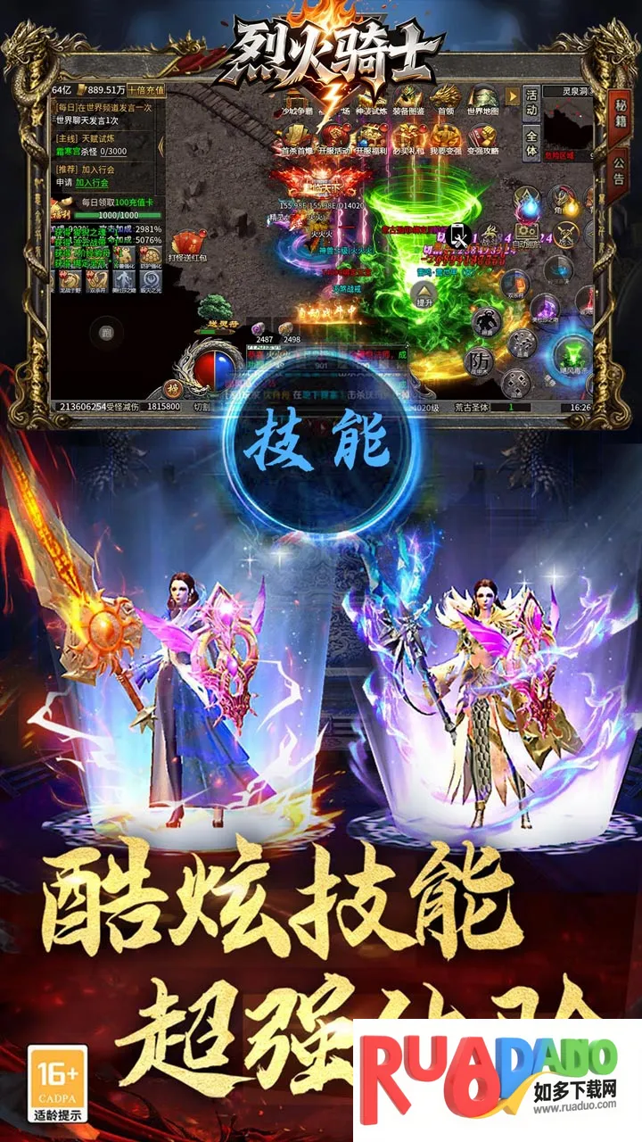 2. 游戏开放 6 个大陆,加入合击二段伤害玩法,合击效果强大。