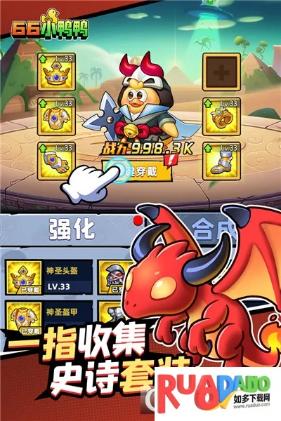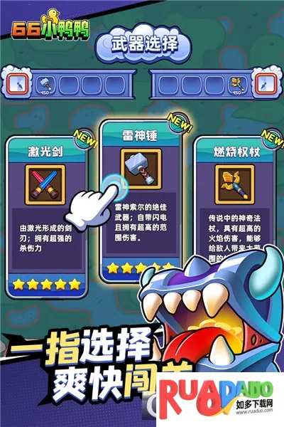 1. 66小鸭鸭2026最新版本拥有超爽快割草体验,面对怪物围攻,能利用酷炫装备应对。