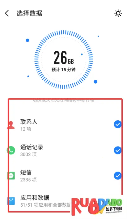 3、选择要传输的数据