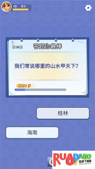 答题大师最新手机版是一款益智闯关趣味答题游戏。画风萌趣清新,关卡海量,覆盖多领域题目。有答题赚钱、比赛等玩法,还有实力排行榜。题目随机刷新,答题环节设置清晰,内置签到系统,关卡奖励可翻倍,快来挑战!