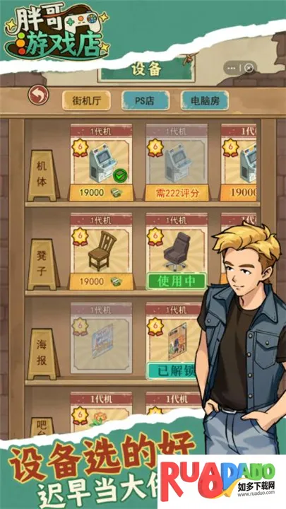 3. 游戏中拥有丰富的街机设备与游戏内容,玩家可不断采购新设备、升级机器配置,打造属于自己的复古游戏厅。