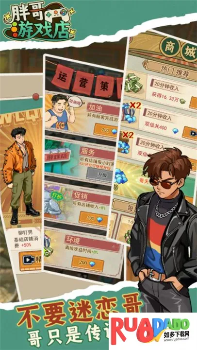 胖哥游戏店是复古风游戏店模拟经营游戏,化身老板,买投篮机等吸引顾客。有90年代街机厅氛围,玩法轻松,多种设备游戏可解锁。操作简单易上手,经营有成就感,奖励多,顾客系统有趣,休闲不肝不氪。