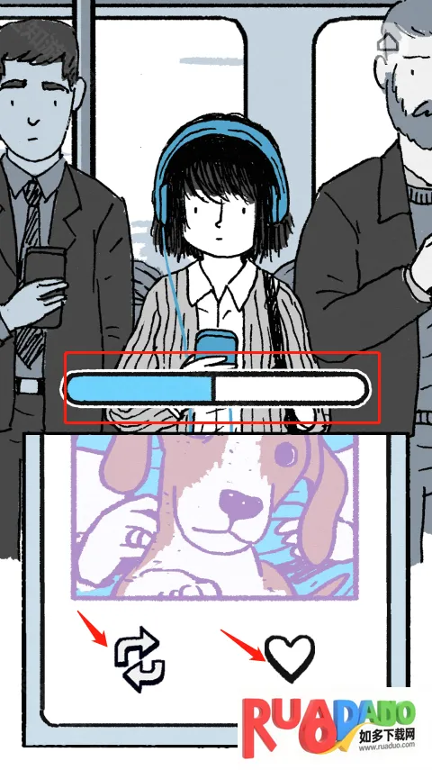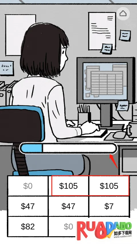 6、到公司了,开始努力上班啦,点击两种数量相同的$钞票,直到进度条满了,就完成今天的工作啦。