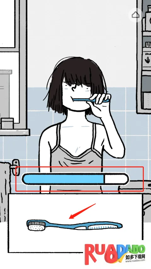 4、起晚了,得赶紧刷牙,点击下面的牙刷左右晃动直到上面的进度条满了。